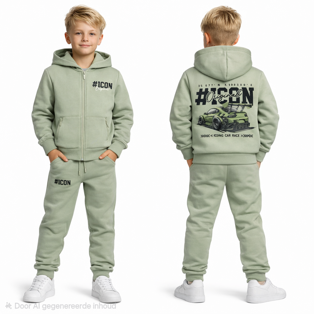 đ Geef de outfit van je kind een stoere upgrade met dit ICON joggingpak groen met auto â stijl en comfort in ÊÊn.