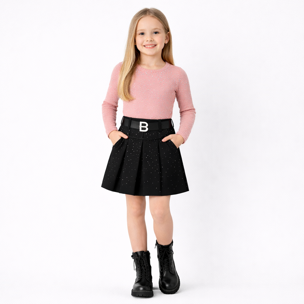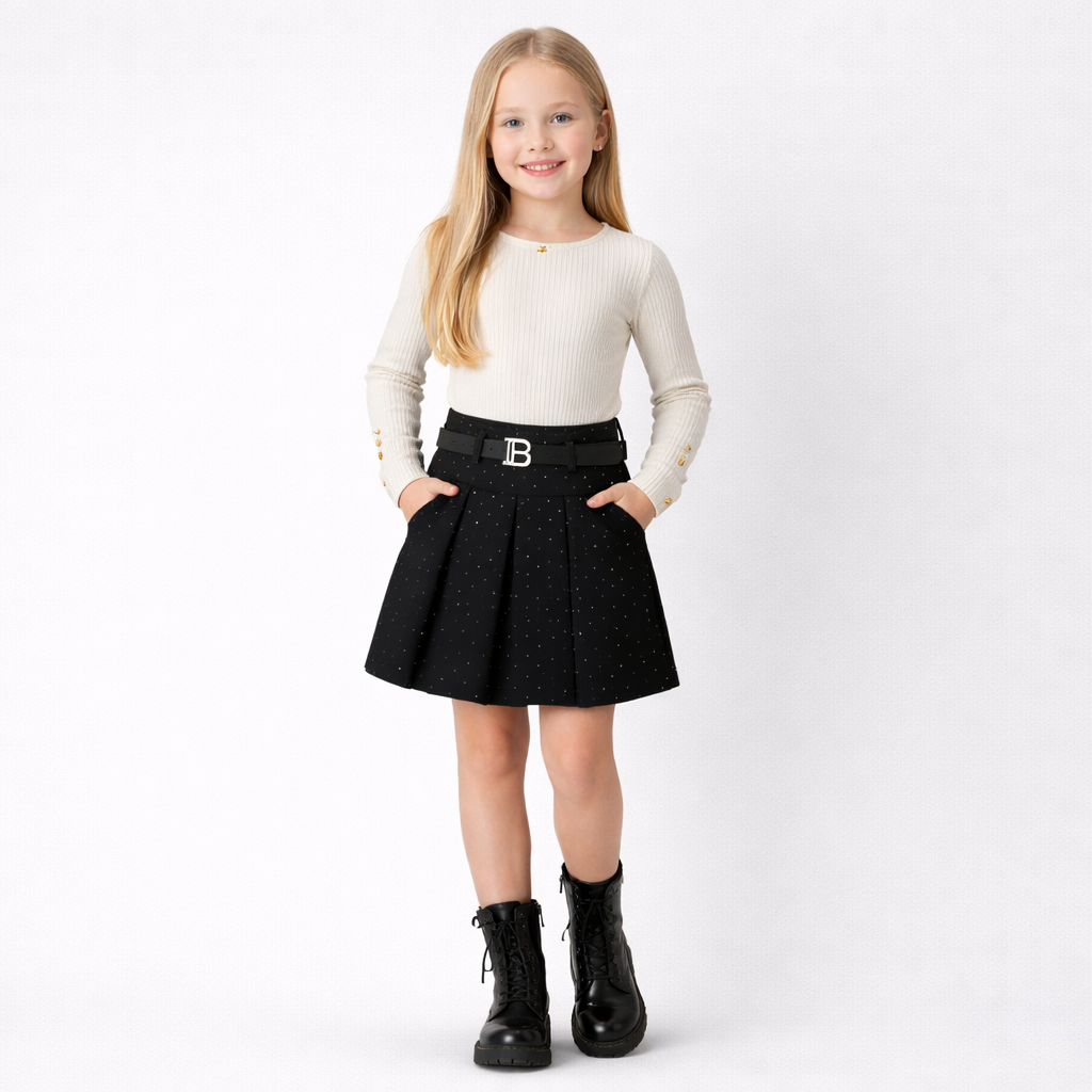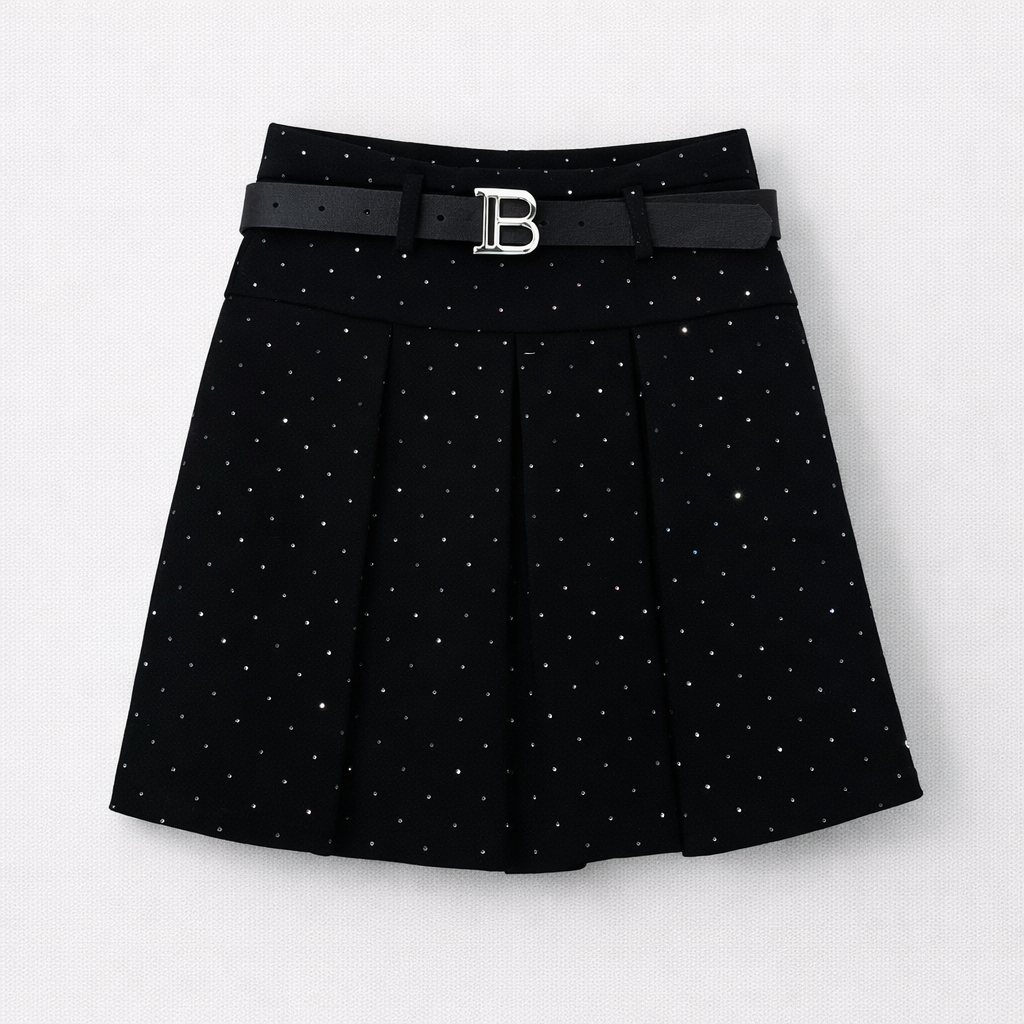 Zwarte glitterrok met ceintuur voor meisjes